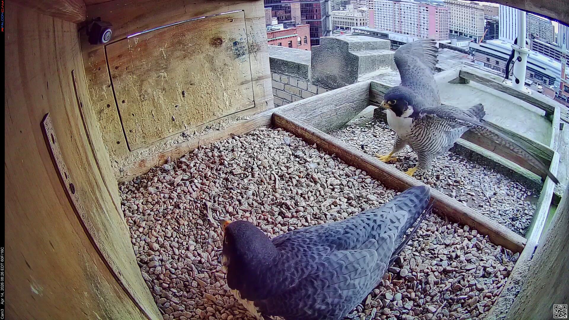 I would normally go downtown for an Easter morning Falcon watch, but I went yesterday instead. I was able to see both Nova and Corazon and even saw them mate on OCSR. So far this morning, both Nova and Corazon were seen on camera. All seems peaceful and quiet. I'll always remember that Easter Sunday morning when Brian and I rescued Mariah. We were able to scoop her up and get her the help she desperately needed. I will never forget that day. It was an Easter Miracle. And I will never forget my dear friend and fellow Falcon Watcher, Brian, who is no longer with us. Fly Free and Rest in Peace my dear friend.