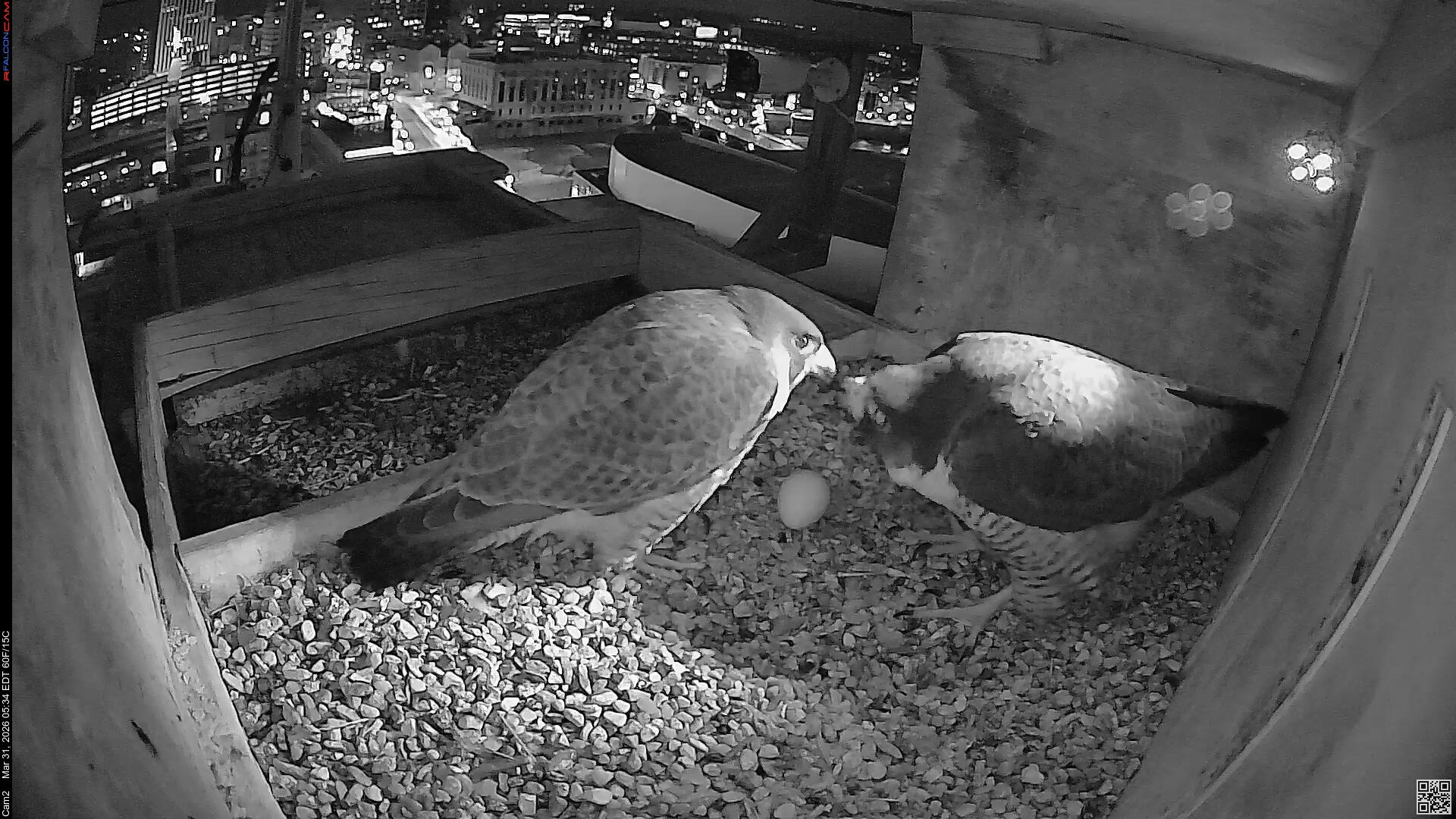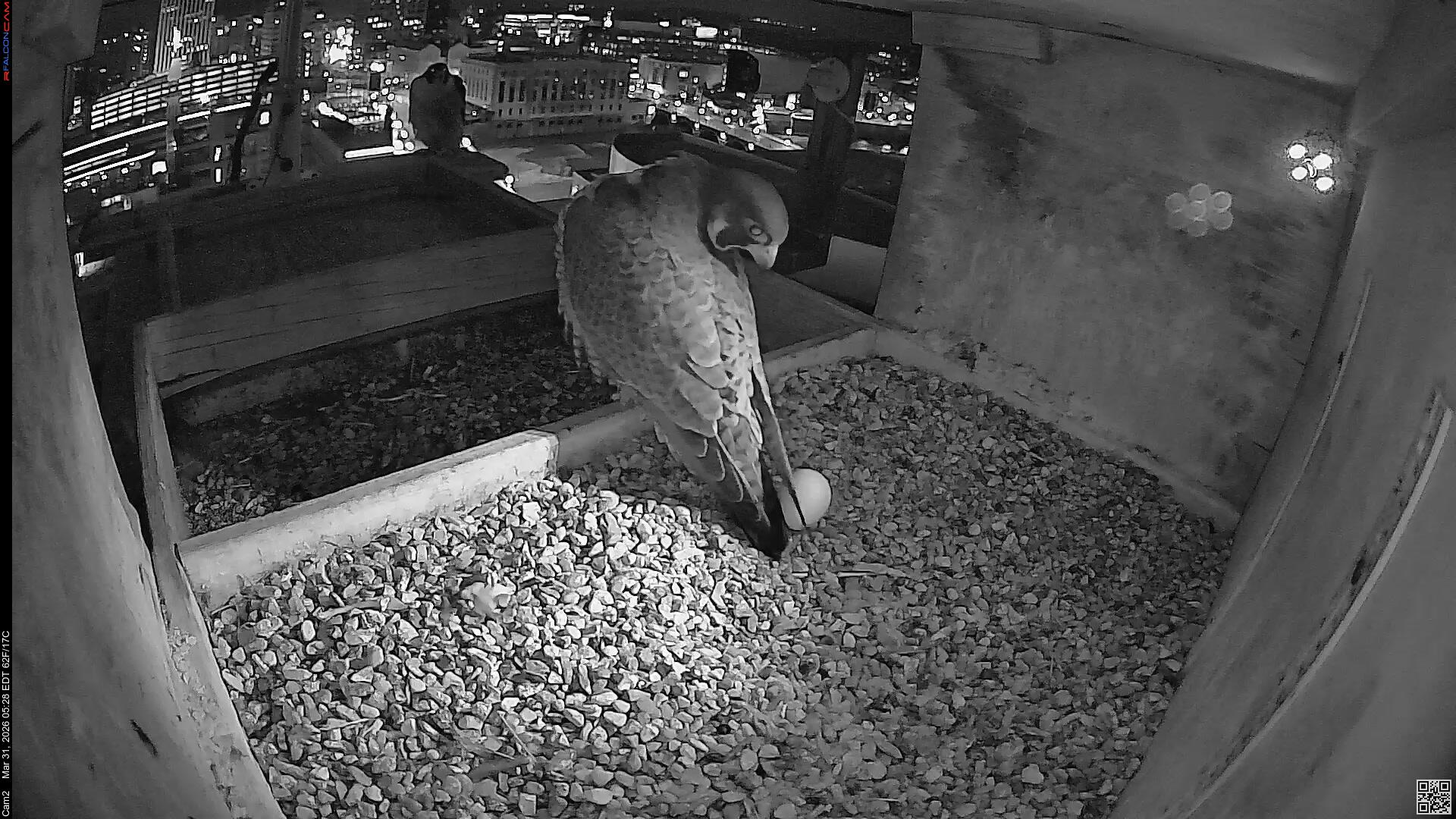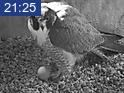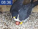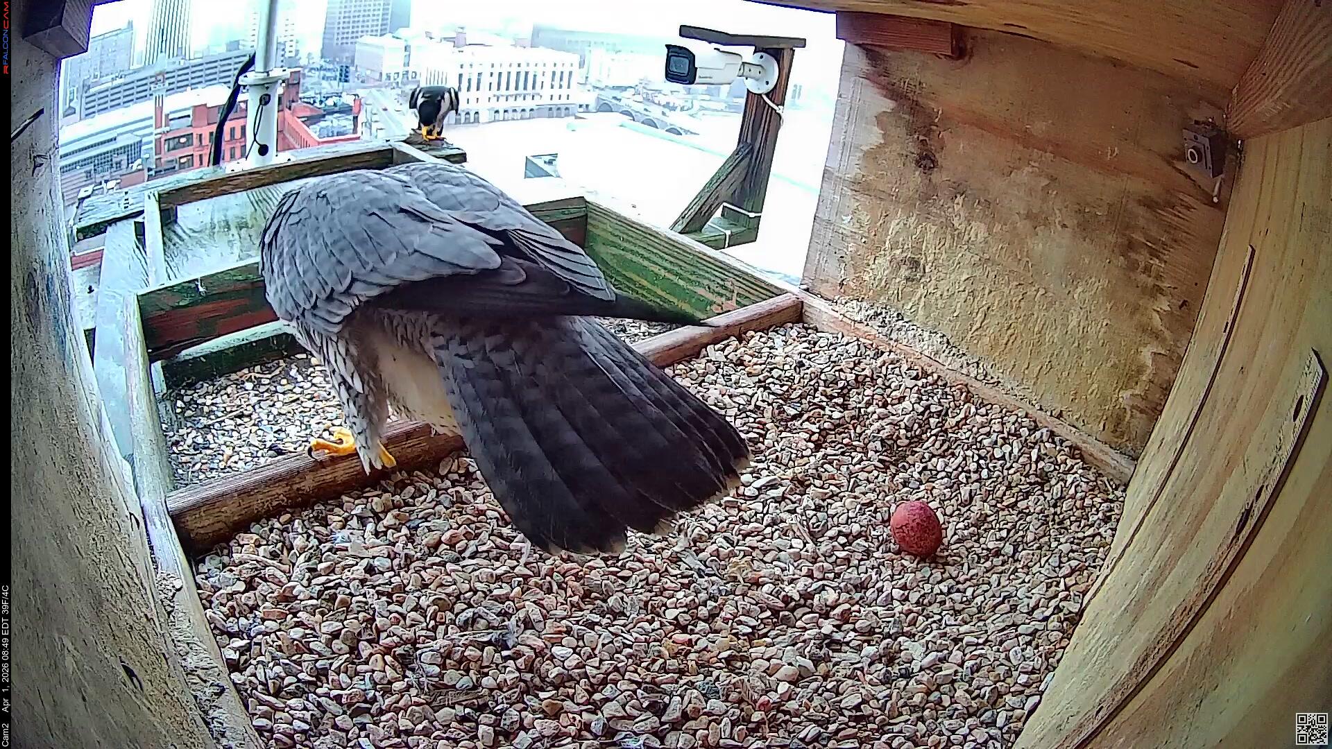 Still one egg. We have to remember that eventhough Corazon raised Nova and Neander's young last year, he is a new mate for Nova. The 2nd egg is definitely late, she usually averages 63 hrs between eggs. But, we've gone way past that time in the past, so I'm not losing hope that there will be more eggs coming. You have to have a lot of patience when watching these beautiful creatures. And if we only have one young falcon to watch this year, I'm good with that.