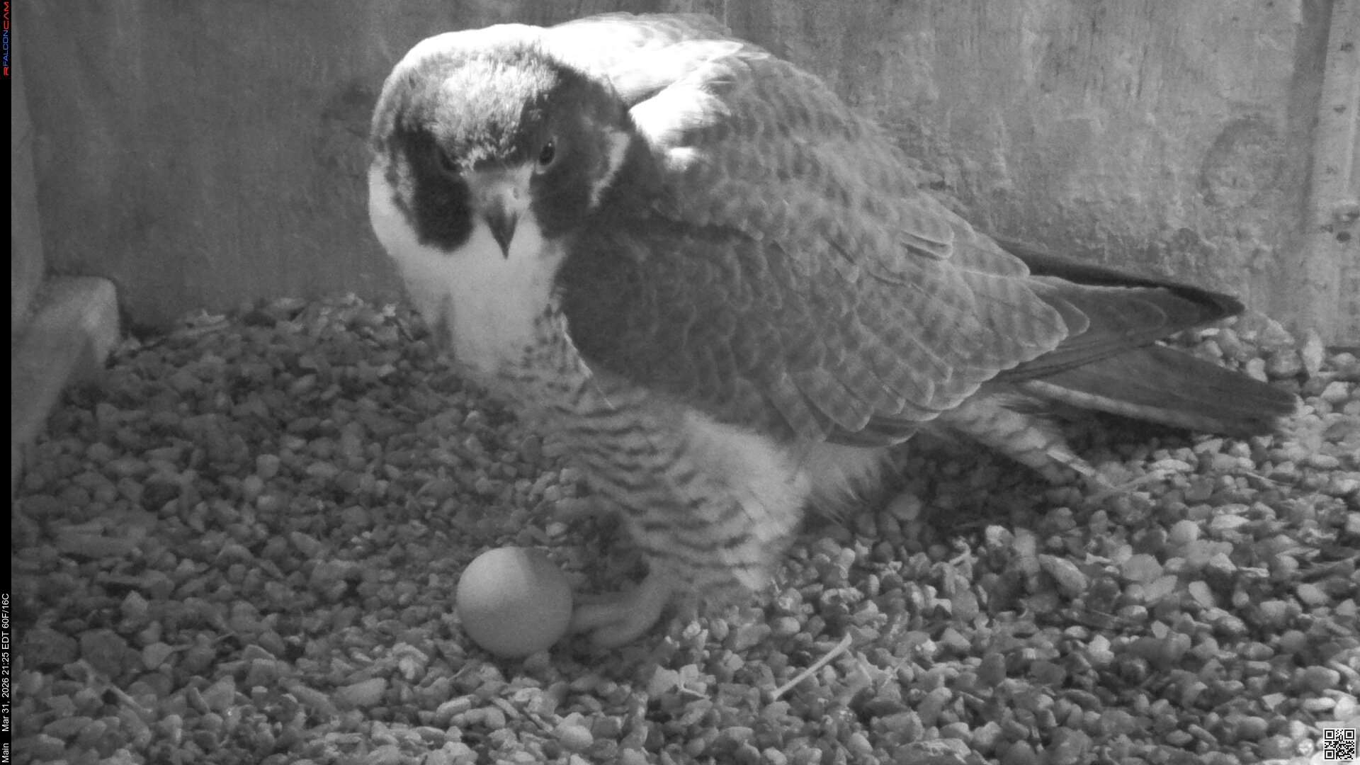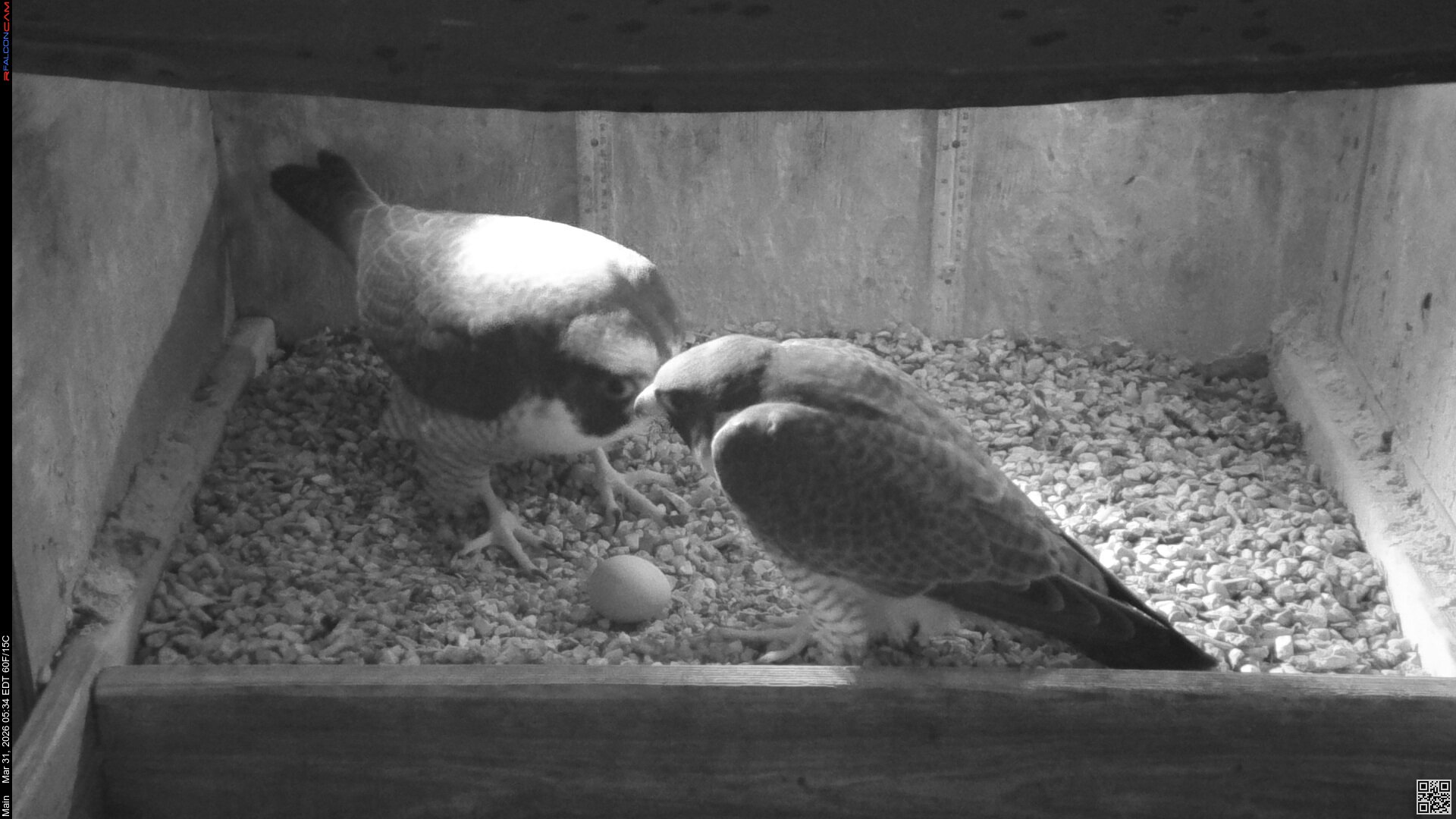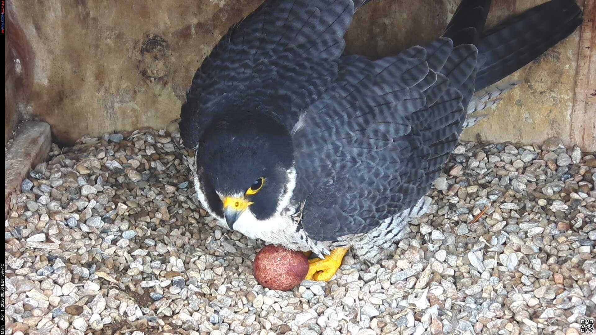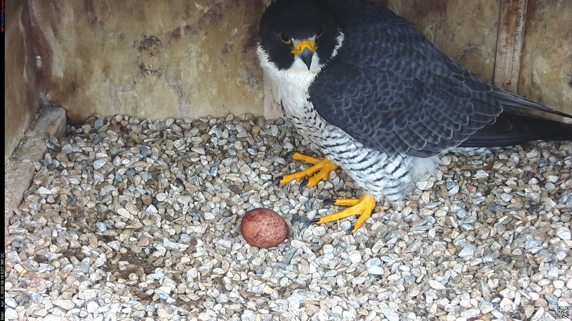 Still one egg. We have to remember that eventhough Corazon raised Nova and Neander's young last year, he is a new mate for Nova. The 2nd egg is definitely late, she usually averages 63 hrs between eggs. But, we've gone way past that time in the past, so I'm not losing hope that there will be more eggs coming. You have to have a lot of patience when watching these beautiful creatures. And if we only have one young falcon to watch this year, I'm good with that.